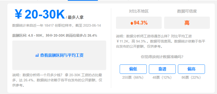 众所周知,IT含薪资待遇非常不错,在各行各业都是顶尖的,而大数据行业由于人才的紧缺,人才缺口非常大,对于技术的要求也比较高,所以薪资待遇非常可观,可以说是IT行业的佼佼者。我们以数据分析师为例,根据职友集最新数据统计,全国大数据分析师的平均薪资高达20-30k之间,确实是大家所羡慕的。