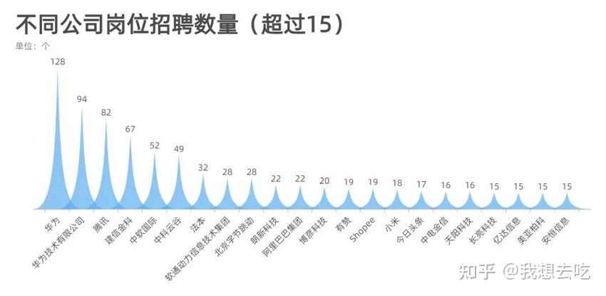 来看看哪些公司在招聘大数据相关岗位,从这个超过15的数量来看,华为,腾讯,阿里,字节,这些大厂对这个岗位的需求量还是很大的。