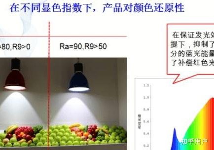 显色指数是表示光源显色性高低的数值。为光源下物体颜色与参照光源下物体颜色相符程度的度量。CIE规定普朗克辐射体为参照光源,将其显色指数定为100,如在一光源下,样品与参照光源下颜色相同,则该光源显色指数为100;若颜色改变,该光源显色指数低于100。当物体被灯光照射时,物体的呈现的颜色和原本的颜色越接近,那么显色指数就越高,物体的还原度越就越高。对于眼睛的护眼效果就更好。