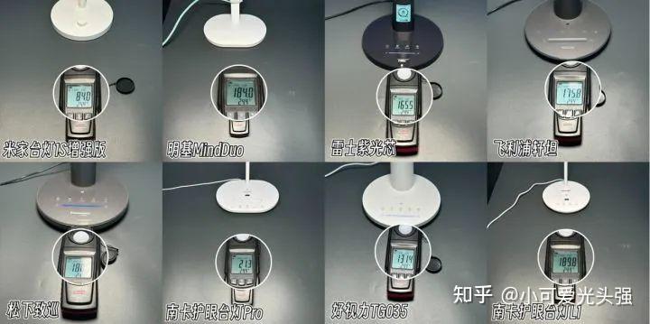 参与测试的几款台灯,只有米家台灯1S增强版只达到国家A级标准,其他都符合国家AA级标准,也就是说除米家1s外,其他均达到30CM区域大于300lx,50CM区域大于150lx,但因为使用场景不同,并不是符合国家AA级标准就能够适合所有场景使用,只有照度够高才能够适应更多使用场景。