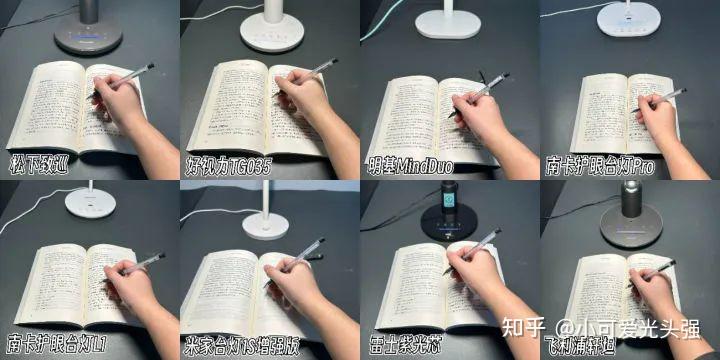 测评方式:模拟真实的写作过程,对比各款台灯的重影情况。