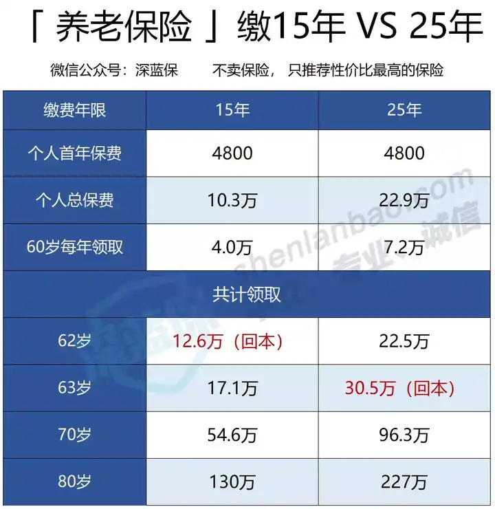 但交 15 年和交 25 年差距有多大呢?下面接着给大家分析。