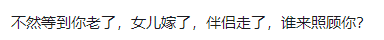 不管是做单身妈妈,还是白头偕老,你们愿意不惜代价生个儿子出来给自己养老吗?不然等到你老了,女儿嫁了,伴侣走了,谁来照顾你?