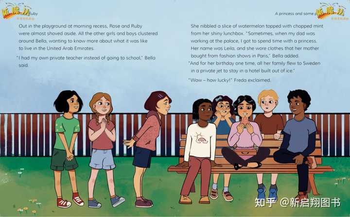 在这本读物中,两个女孩之间的深厚友谊、对新同学的强烈好奇心、因为对比而产生的那种隐约的自卑感、物质富有但精神空虚、以及朋友之间的误解等话题,都非常贴近青少年的现实生活。在阅读这本绘本的同时,读者仿佛也看到了自己,非常能引起共鸣。本书主要教孩子如何与同龄人相处,在集体生活中快乐成长,以及通过沟通、倾听来化解误会。