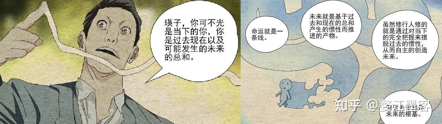 没有了过去 要么,未来的陈金魁被切开了,他成为了一个没有未来的人。原本基于过去现在的基础所衍生出的未来变得不再存在,外界的一切都会最大限度改变他的未来,命运的走向就像无根之萍不再受一点点控制。就像当初死在二十四节谷炁局中的阿郎,一切外在因素都会轻易的改变他的命运,而他根本无能为力。