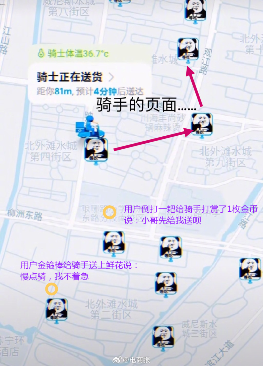 1、让买家知晓骑手当前的工作强度,很多人投诉都是说骑手在我周围转来转去半个小时,就是不送,其实小哥在给别人送。
