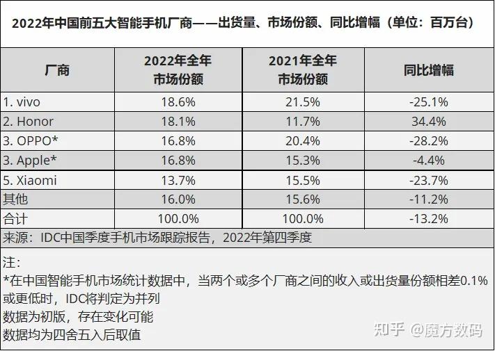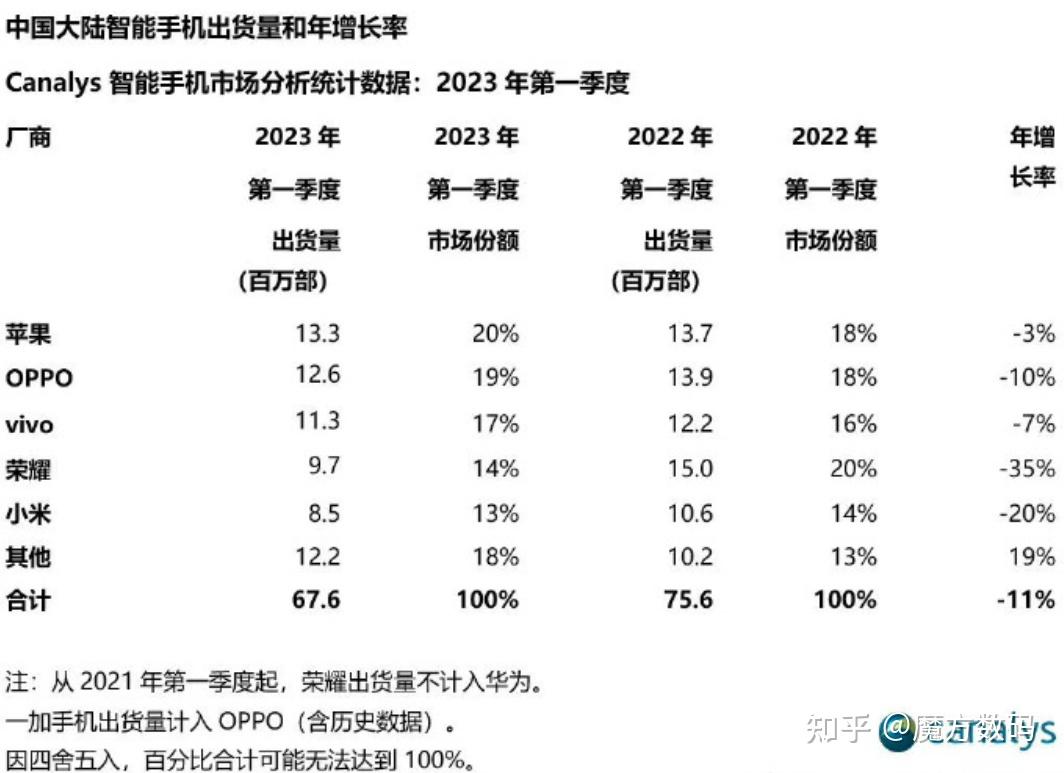 如果剔除苹果以后2023 H1国内手机出货量排名前三是:vivo、OPPO、荣耀,这点真实性确实值得信任,根据市场调研机构Canalys的统计数据显示中国智能手机市场在2023年第一季度中剔除苹果以后。