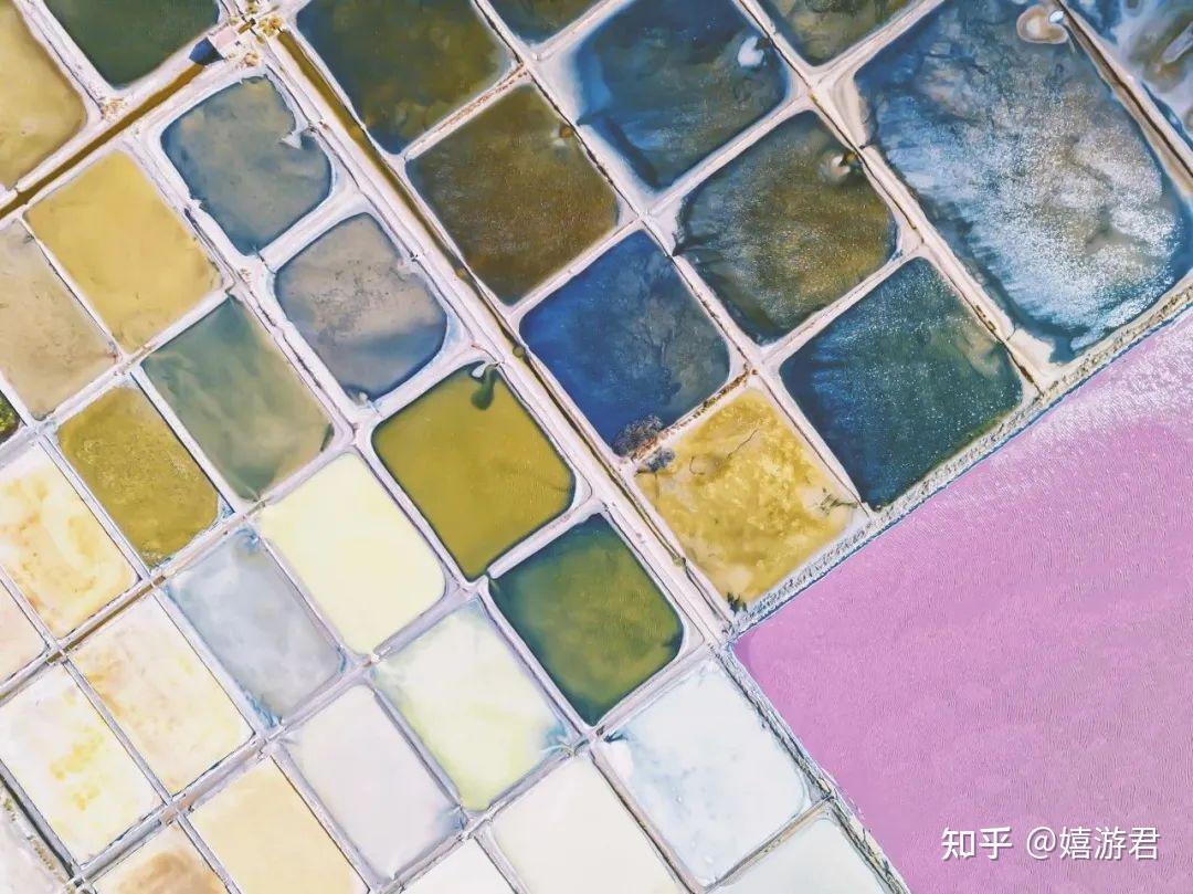 在港西镇环海路旁边有一处百年盐田,随着气温越来越高,盐田就会呈现出绚丽多彩的独特风景,犹如上帝的调色盘。
