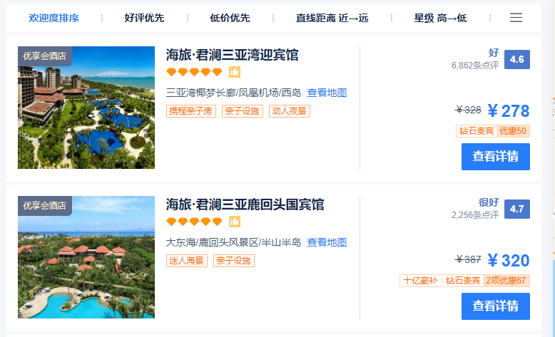 所以看完这些,总的来说在三亚真可以说是丰俭由人,便宜的酒店也是一抓一大把,就看你愿不愿意住了。