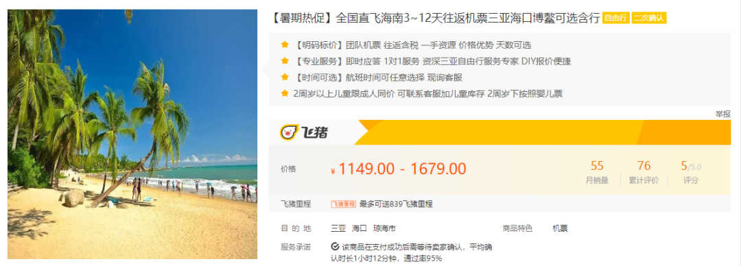 所以如果有计划在暑假前往海南,可以和这个票对比一下,到底是直接订票合适,还是买这种团票合适。