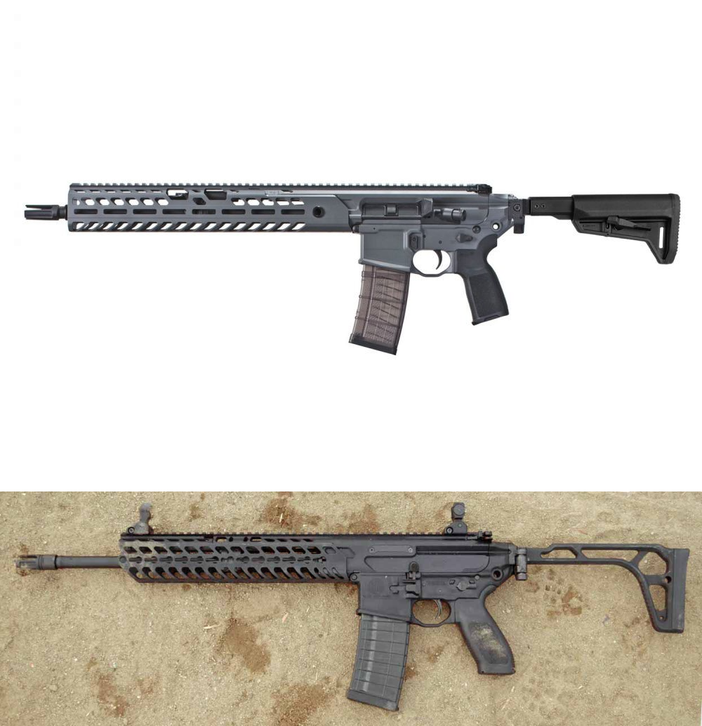 西格绍尔的MCX,算是美军新枪XM7的原型,空皮卡丁尼导轨和装上机瞄的对比,并不妨碍在上面再装上瞄准镜和其他挂件。