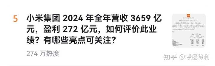 从今天起,准备做一个连载,内容是小米和雷军在知乎上热搜的情况。