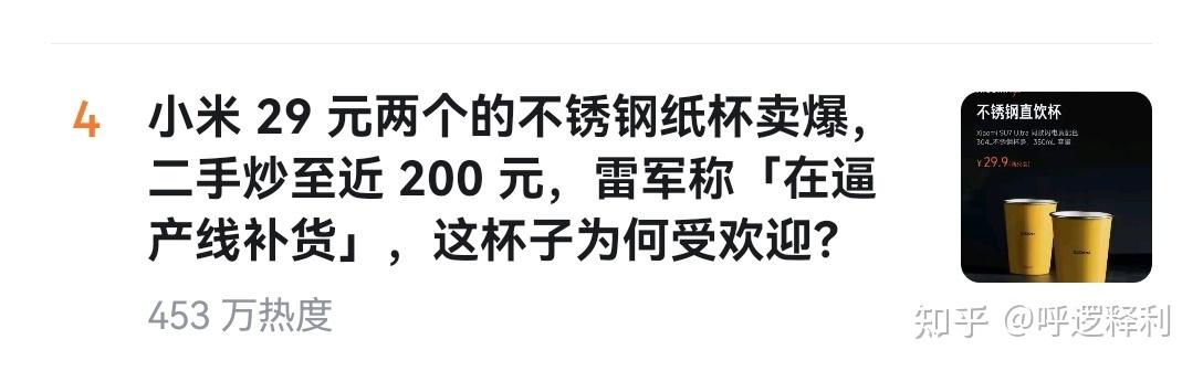从今天起,准备做一个连载,内容是小米和雷军在知乎上热搜的情况。