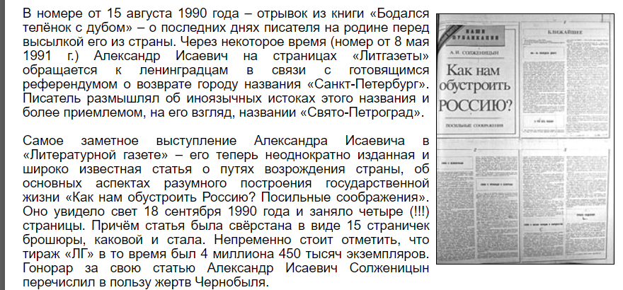 Без Солженицына,Еженедельник "Аргументы и Факты"
