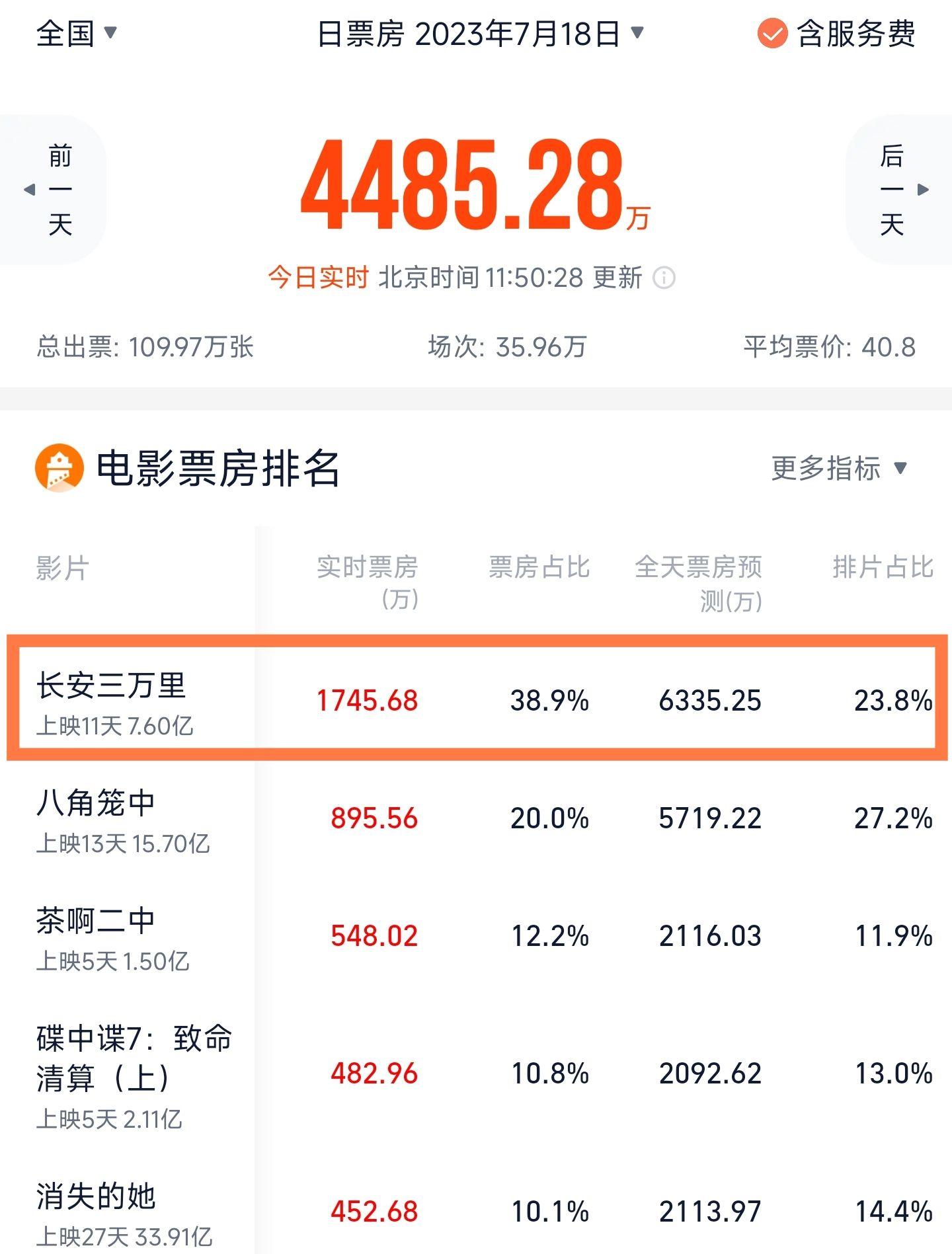现在的悬念是,国产电影票房第十是《红海行动》,36.5亿,《长安三万里》敢不敢做这个梦……