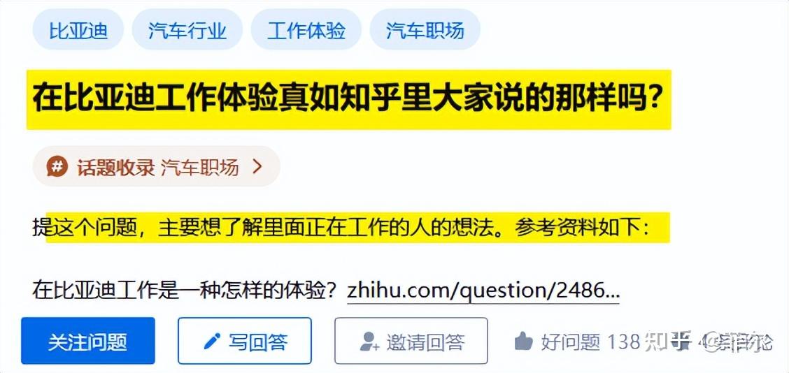 在某乎上,有这样一个关于比亚迪的问题:在里面工作真如大家说的那样吗?想了解里面正在工作的人的想法。