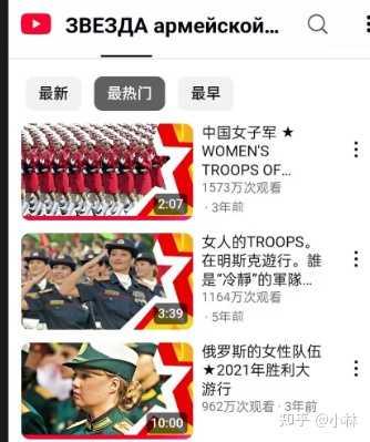在油管中国女兵阅兵的视频点击量很高,俄罗斯的阅兵频道中国女兵阅兵几乎是播放量最高的