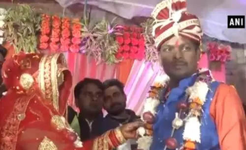 一对印度新婚夫妇为抗议洋葱价格飙升,特意选择在婚礼上用洋葱代替“珠宝”,为对方戴上“洋葱花环”: