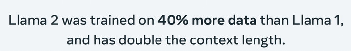 “Llama 2 pretrained models are trained on 2 trillion tokens, and have double the context length than Llama 1. Its fine-tuned models have been trained on over 1 million human annotations.”