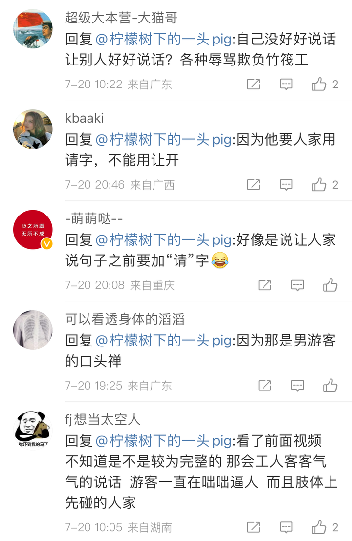 但事情怎么看都是游客不对,你觉得不爽,人家让你骂两句得了,你这追着骂是怎么回事