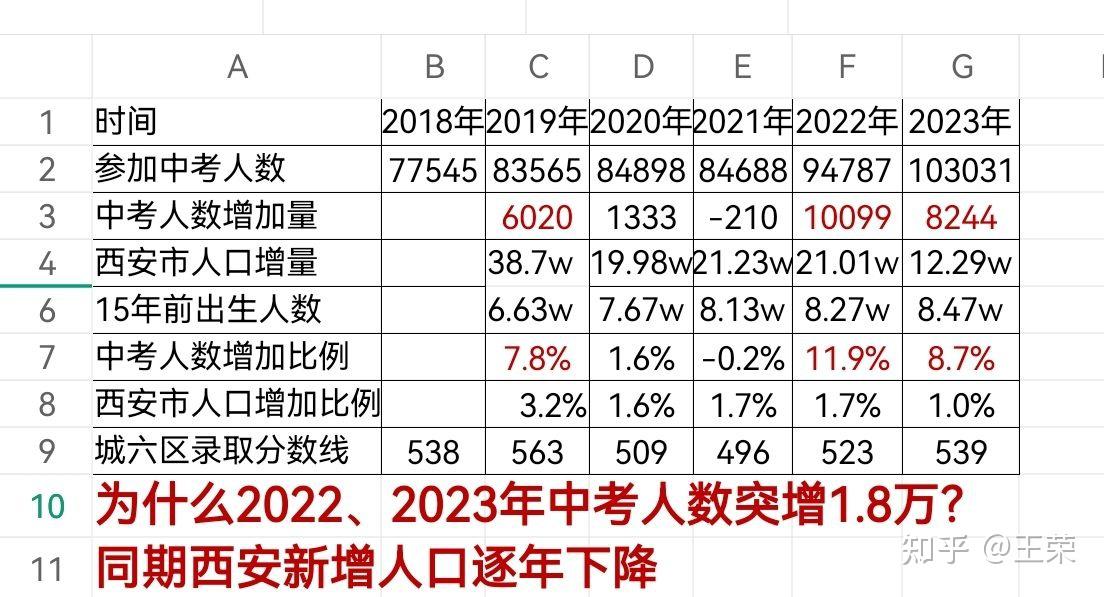 问题出在2022年,猛增1万多人,这就有点诡异了,2023年继续高速增长。带来的就是分数线暴涨,而且高分也找不到好学校接纳。明明最近几年西安的人口增速放缓,怎么初中生反而多了这么多呢?