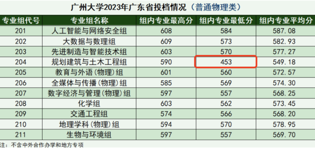 揭破真相的明明是组内专业平均分。规划建筑与土木工程组549的均分在普通物理类所有专业的均分中是垫底的,比平均分里的倒数第二都低了将近20分,这绝不是单独一个453分的最低分能做到的……