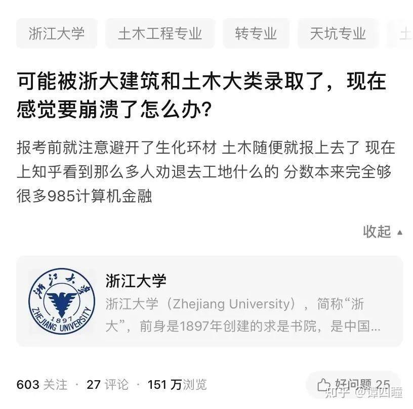 知乎本专业名贴,要知道浙大建筑系可是和医学齐名的最高分系,现在已经沦落到考上却要来知乎发帖的地步了。然后好多院校都开始改专业名称,为的就是换个新的皮肤,看看能不能提高招生率。