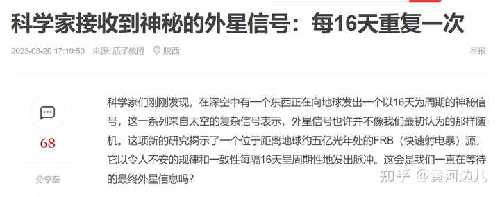 好吧,正经地说,类似于“地球接收到有规律的神秘信号”这样的新闻,大概率是脉冲星造成的,只不过现在脉冲星理论还不完善,可能没法理解这样的脉冲周期特别长的脉冲星。