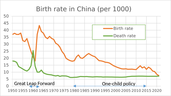而且在人口出生人数最低的1961年,新生儿数量也有1189万,1962年更是高达2464万。