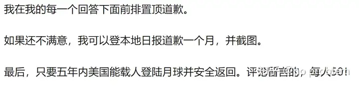本来这也没啥,世界各国航空航天专家经常会科普阿波罗登月,但是看到下面回复我真的惊呆了,大家可以去瞻仰一下,这篇科普文的作者郑永春博士曾经荣获月球探测工程圆满成功有功人员奖、探月工程嫦娥二号任务突出贡献者奖和中国航天科普大使等一系列荣誉,而且是中国科协月球与深空探测领域首席专家,可算是登月科普领域专家中的专家了,接触到的登月相关资料和对登月计划的了解深度远非一般研究者可比,更不用说批发三手四手网络谣言的登月阴谋论者了。