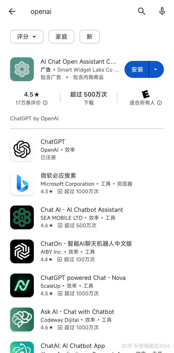 接着在 Google Play 商店中搜索 GPT 应用,并点击“安装”。