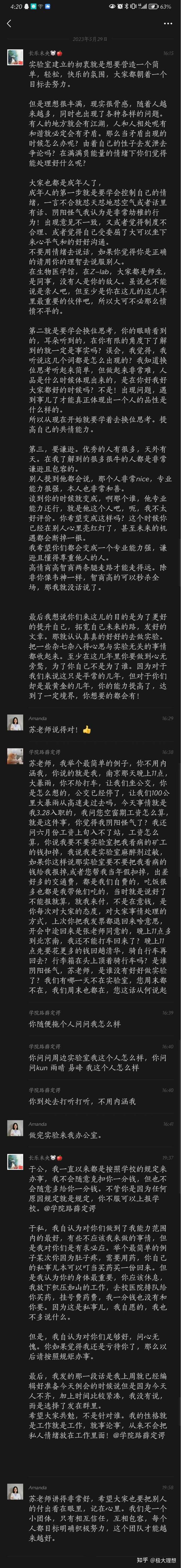这个姑娘抛却家人,又把实验室属员都开了,是过于暴戾,她一直喊要win,让我想起蒲慕明当年给打的鸡血,其实这么多年神经所也没做出什么重要让人记住的工作,相反造就了很多博士一毕业就厌学逃跑的人,这种狂卷的成功学哪怕在生物领域其实意义也不到。当然有些人做实验只是追求自己预期的结果,这个是例外。浙大那边和高老师那应该更没有什么让人记住的工作。灌水到正刊确实靠关系也靠运气,但是做出一流的工作,做让业界记住的事,这种心态是不行的。什么每天实验室坐多少个小时都是比较扯的。