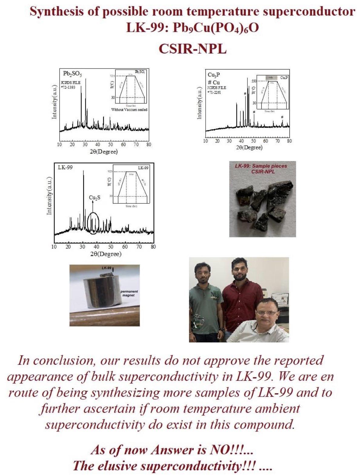最新消息,来自印度团队的复现尝试失败,无法观测到量子锁定现象,即在磁体上方的悬浮现象。其他指标暂时没有消息,还需更进一步的尝试和测量。但也有人声称是因为他们这次复现的操作不规范。(加热程序不对+铜掺杂有问题)