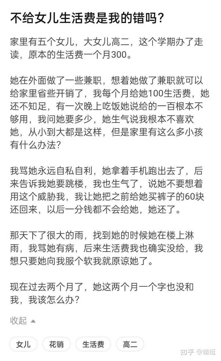 虽然有钱没钱没有固定的标准,但有一个公允价值,背着婴儿穿梭在车水马龙里送外卖的、干活要把孩子用铁链拴起来的、孩子幼儿园学费交不起的在家混日子的、我无法为他们的母爱父爱点赞。