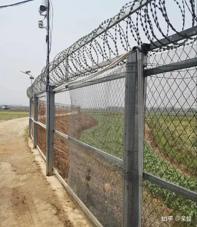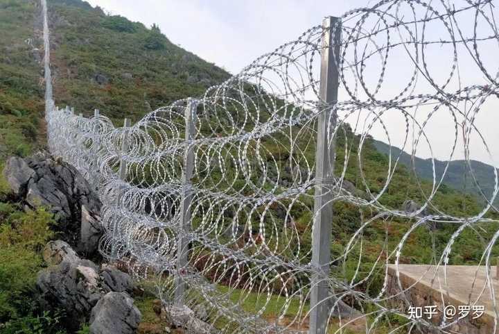 这两年,因为电信诈骗泛滥以及疫情防疫需要,我国沿着缅甸边境修了这样的一道隔离墙,上面是铁丝网,可以通电,有摄像头覆盖,铁丝上还有传感器触动会报警,日常有人巡逻。
