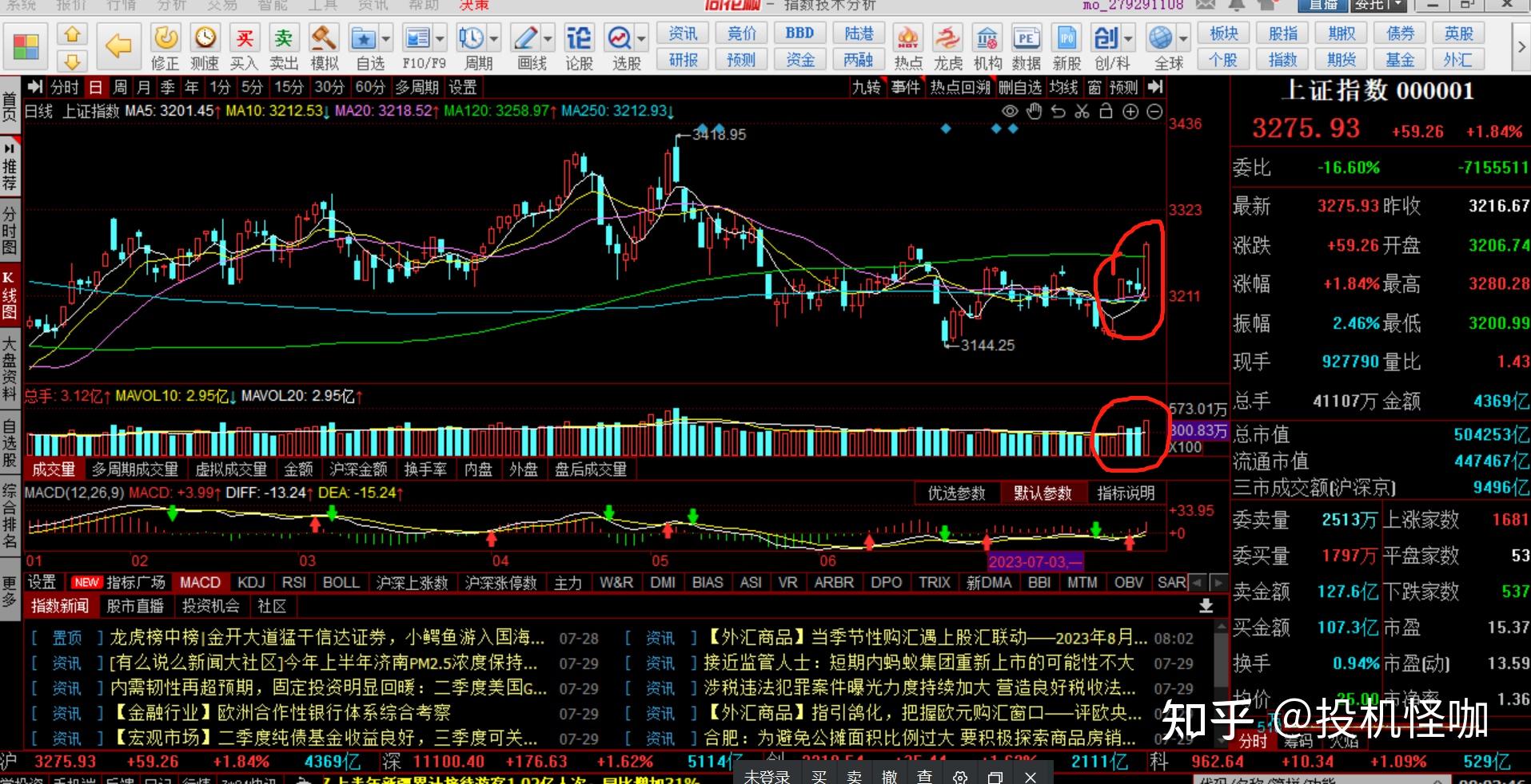 7月25日,上证指数高开高走2.13,而且7月28日大涨1.84%,且两个大涨交易日都是呈缩量上涨。