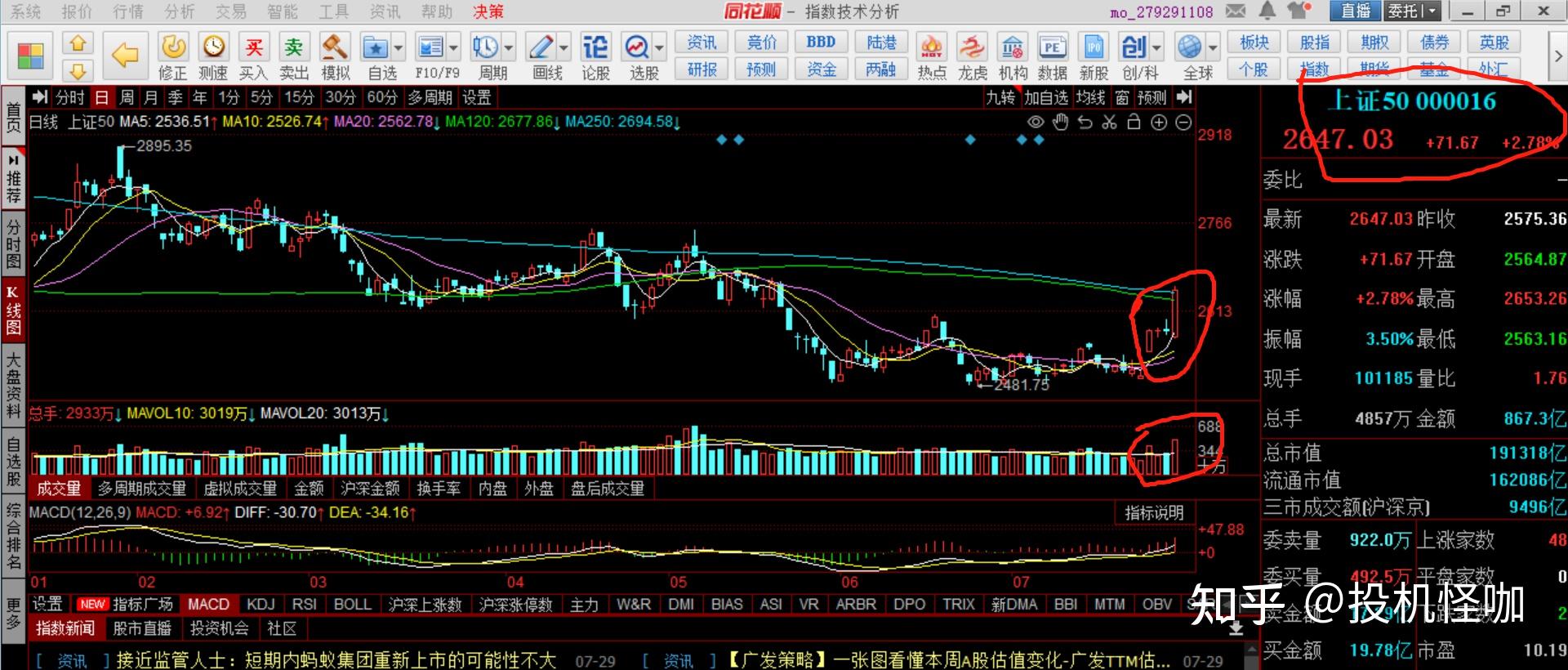 在内外政策共振下,国家队和外资机构资本紧贴政策导向7月25日大举进场买入,才造就了7月25日高开高走大涨2.13%的行情。