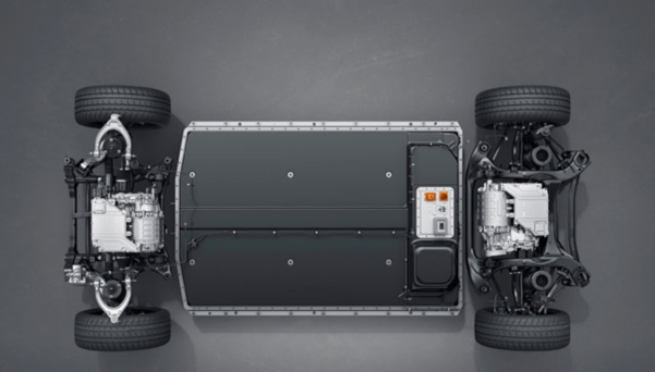 再如中置电机。正常情况下,电机都是布置在轴距之外,例如蔚来汽车的底盘平台如下图: