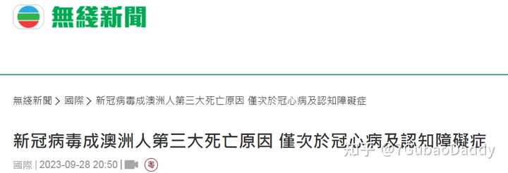 我们能看到TVB报道“新冠病毒成澳洲人第三大死亡原因”(注意日期)