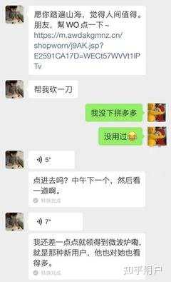 ⑤拼多多的很多活动,特别是砍一刀,免费拿商品,让人又爱又恨,欲罢不能。这种拉新活动,不断地通过以旧人拉新人的活动,新人又拉新人,使影响不断扩大,使用人群越来越广。