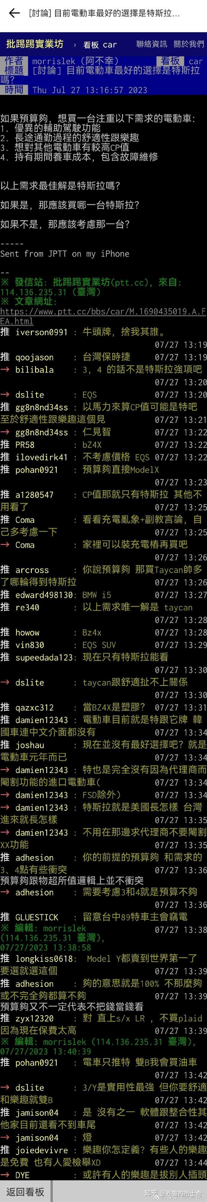 你看人家问特斯拉是不是最好的电动车选择,还有很多人推荐BZ4X,只能说容易满足的人就是快乐编辑于 2023-07-30 16:52・IP 属地北京查看全文>>