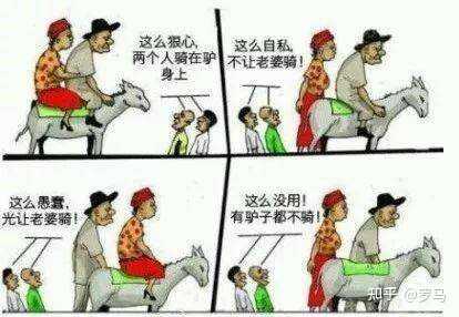 我想起那个一对夫妇骑驴的故事,