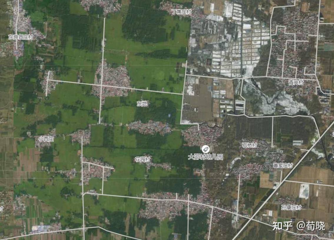 从渣画质卫星图看都能看出当地种的作物和周边区域有些不同的百尺竿镇贡米产区。