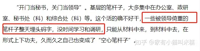 好多基层每天根本也干不了多少实事儿,除了跑跑腿,就是天天就是被领导安排写那些乱七八糟的狗屁八股文件,可不就是空心的笔杆子么。