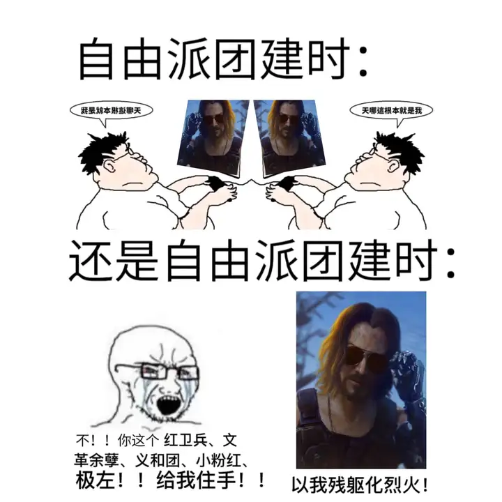 自由主义实际上只是个牌坊 是一个输出建制派的道德高地 实际上目田们 师承自十年动乱时期的造反派 只不过摇的旗子变了 总纲领还是造反 所以完全不存在自由主义的理论基础 反反复复只会念经 写大字报打击别人