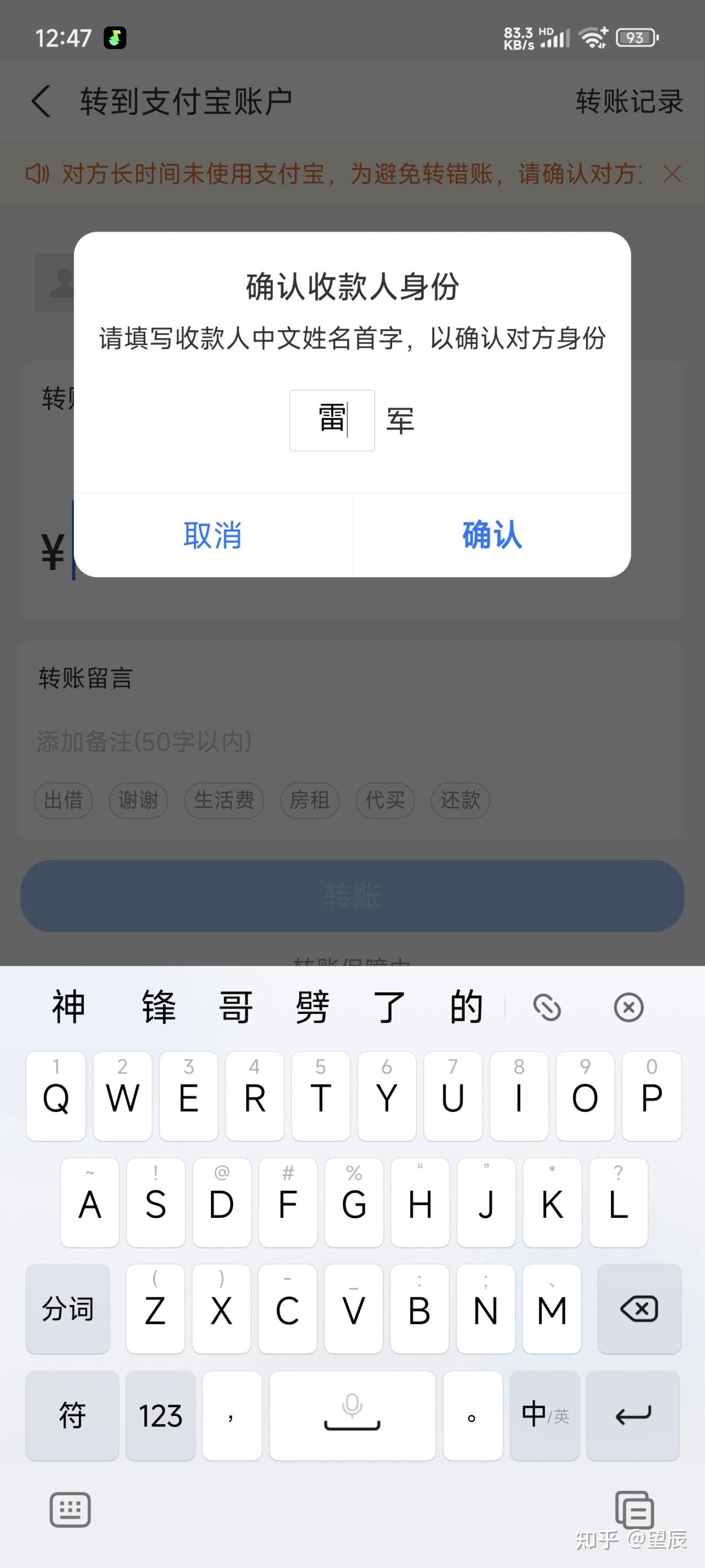 转账前确认下姓名