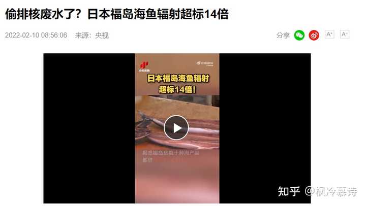 于是在2022年的时候,央视专门做了一个报道,日本福岛县近海的鱼类,所含放射性铯活度超标14倍。