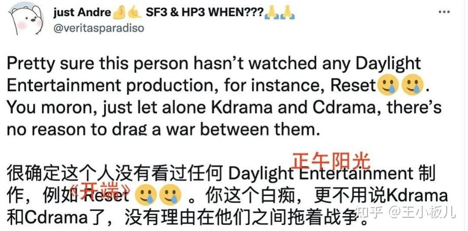 结果一位菲律宾人指出,韩剧粉太为傲慢,完全忽视了国产剧(cdrama)和日剧(jdrama)的存在。这时候,有人拿国产剧出来拉踩了,说韩剧比国产剧无论是制作还是演技都好太多。