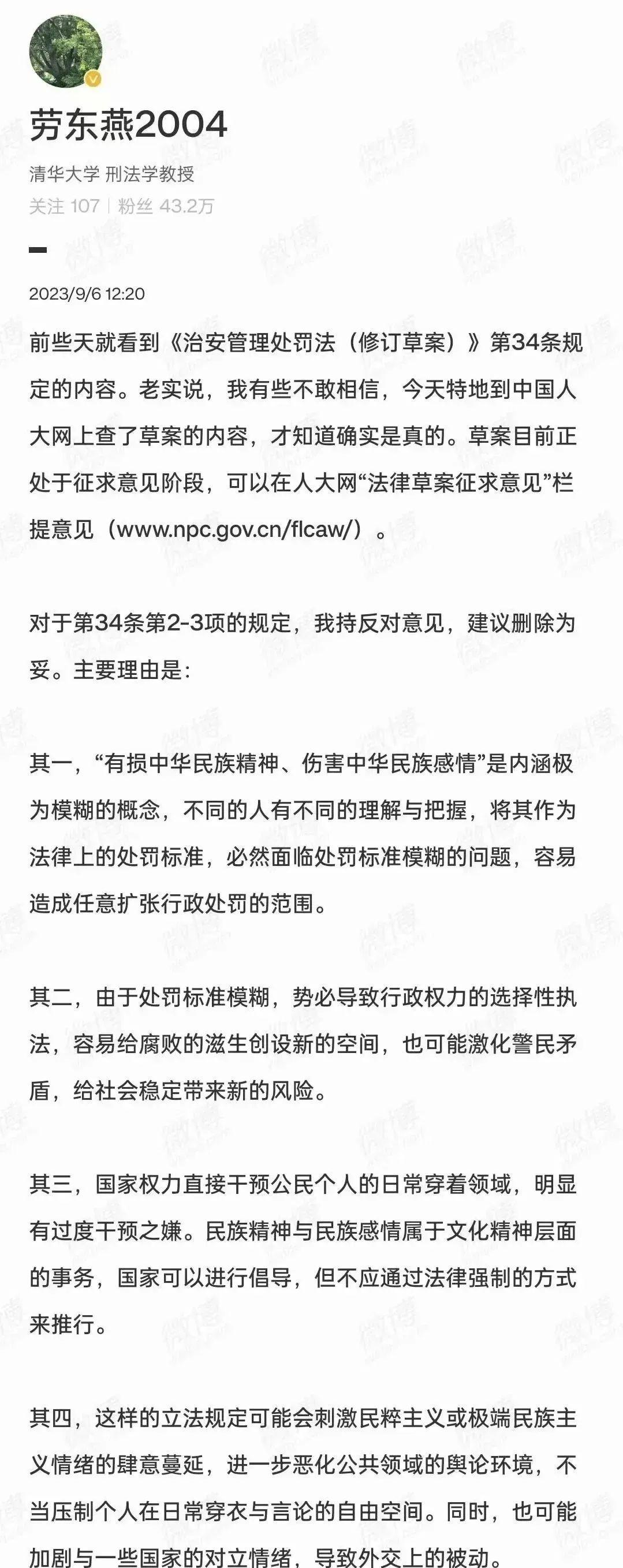 比如中国政法大学教授赵宏,觉得里面的“中华民族精神”“中华民族感情”定义较为笼统空泛,执行起来全靠公职人员个人衡量,不太合适。