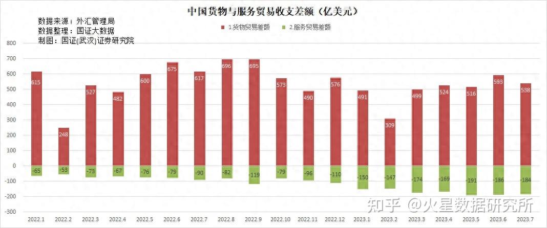 与此同时,由于国际游客恢复不足三成,旅游服务贸易收入急剧萎缩,我国服务贸易逆差急剧扩大。根据国家外汇管理局中国国际收支货物与服务贸易数据表中的数据,今年7月服务贸易逆差增加到184亿美元,同比扩大了104.4%。1-7月服务贸易逆差为1200亿美元,同比扩大了139%。